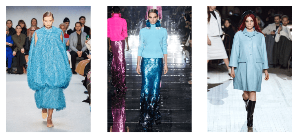 A colour that kept popping up all over the runaway was blue, in all shades from baby blue to electric blue. This is an interesting choice for AW but when styled on the runway you could see that it worked. With JW Anderson showing how a full blue outfit can still be very wearable; Tom Ford combining stunning shades of blue with a simple high neck jumper that could be worn by anyone; and Marc Jacobs highlighting how well blue and black go together with an adorable blue coat and patent leather boots. Blue is a great way to add some colour to your AW looks as it goes super well with neutrals or go all out with a statement full blue look.