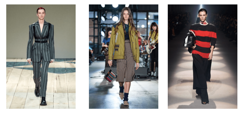 If check isn’t for you there’s no need to worry. There will be other print options that will be super on trend come the new season, one of them being stripes. Stripes are a classic print and this year there is a good mix of classic stripes and fun, new twists. You can mix colours, thickness or horizontal and vertical stripes for a refreshed way of wearing simple pattern. Below Alexander McQueen showcased a killer vertical striped suit for a power office look, Coach mixed various colours for a new age boho look and Givenchy kept in casual and classic with a thick striped jumper. Stripes are never going out of style.
